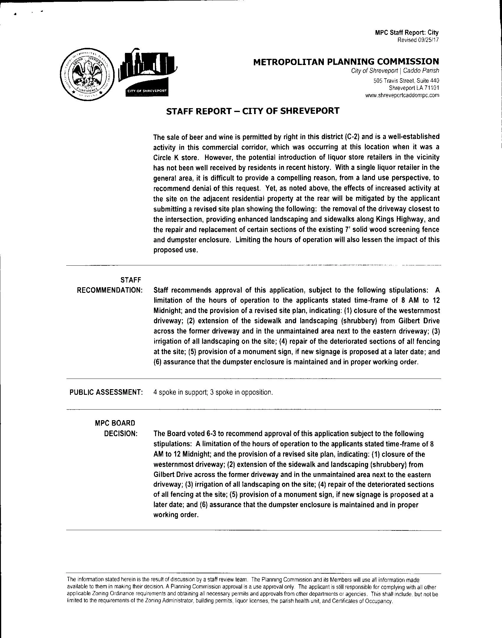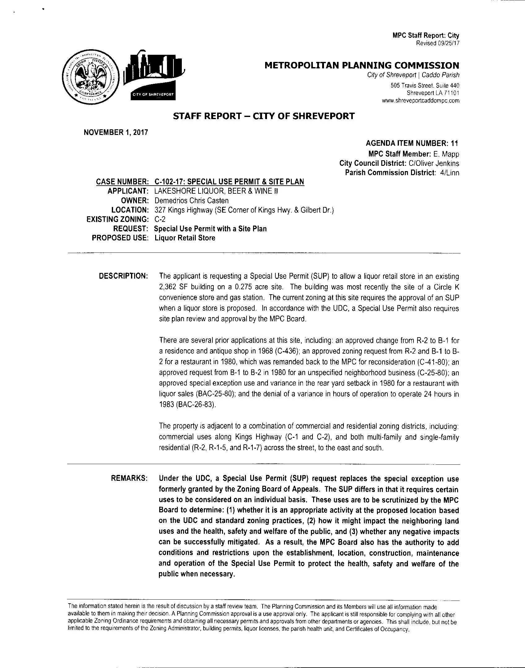 The special use permit, and any requirements for the site plan, are subject to review and amendment by the Shreveport city council as a part of the approval/disapproval process.