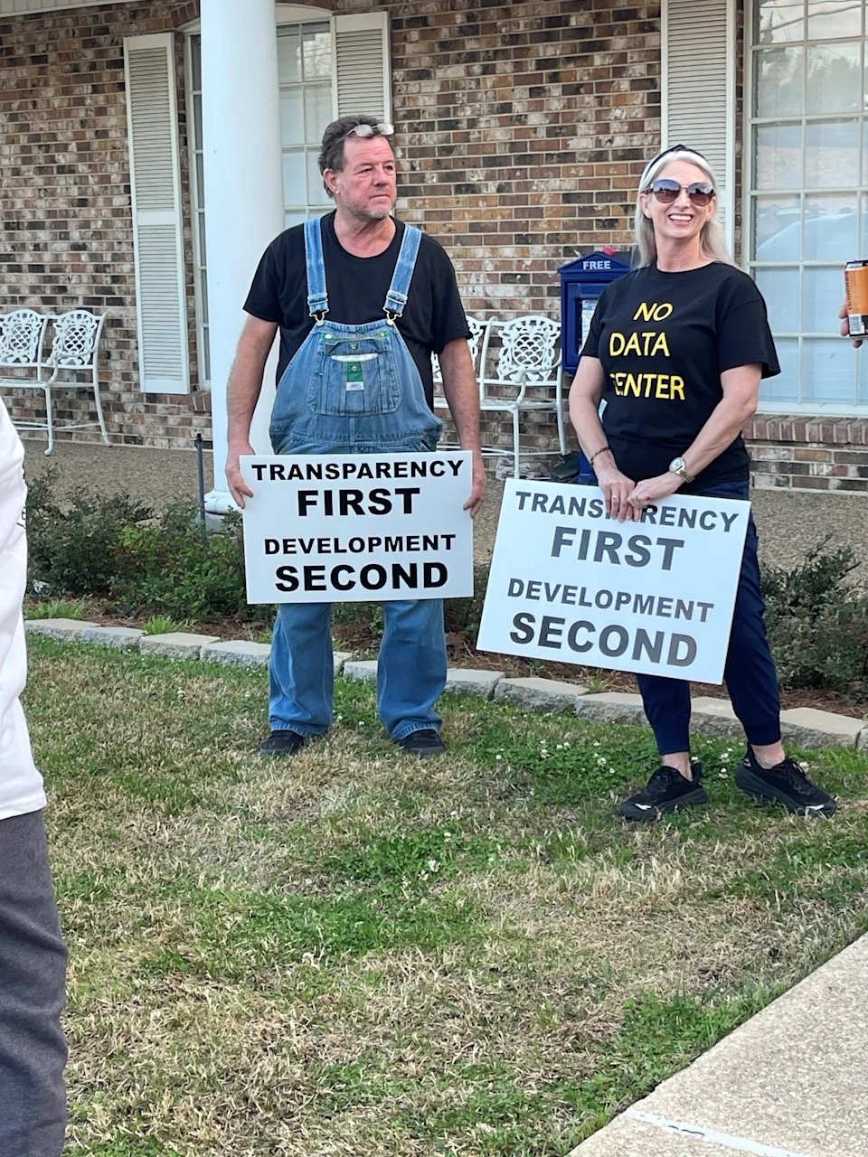 Protestors spoke out at the Blanchard community meeting Tuesday over Amazon's planned AI data center.