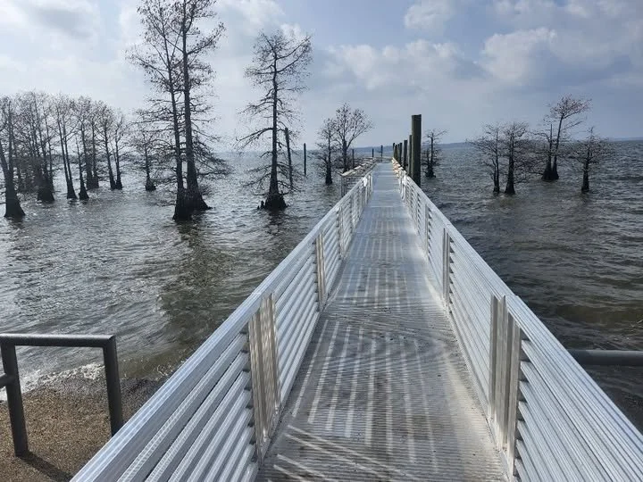 A new accessible floating fishing pier measuring 203 feet, with a 60-foot cross pier and 10-foot-wide walkways